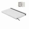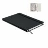Bloco de notas A5 com capa de caixa de cartão dura reciclada. 160 páginas revestidas a papel de pedra (80 folhas). Fecho elástico e fita marcador de página.