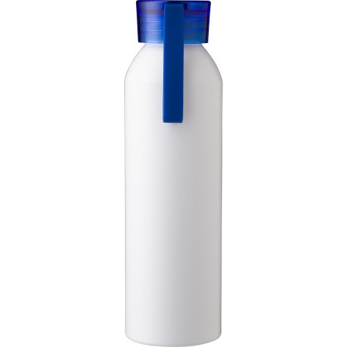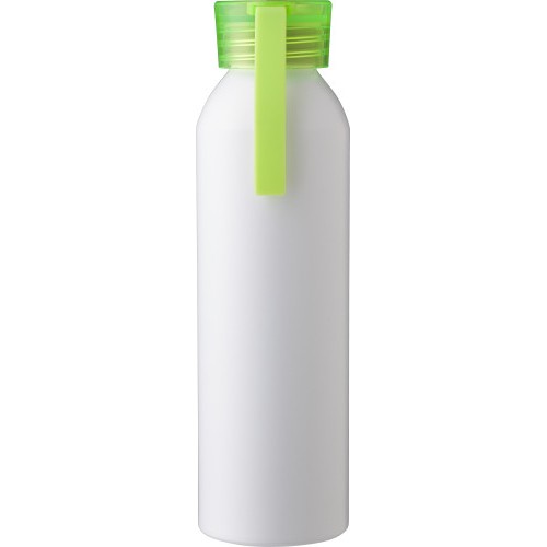 Garrafa de alumínio reciclado (650 ml) com acabamento mate, tampa PS de cor transparente e fita de silicone a condizer. Adequada apenas para água fria. Logótipo reciclado gravado na garrafa.Material : Alumínio, PS, PP, Silicone.