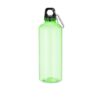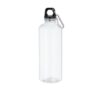 Garrafa fabricada em material RPET resistente, com capacidade de 630 ml. Corpo translúcido e tampa preta de fechamento com rosca para garantir um selamento ótimo. Inclui mosquetão metálico que facilita seu transporte. Livre de BPA.O material RPET é elaborado a partir de plástico reciclado, para assim fomentar a reutilização de resíduos plásticos e ajudar à sustentabilidade do planeta. 630 ml Composition : RPET.