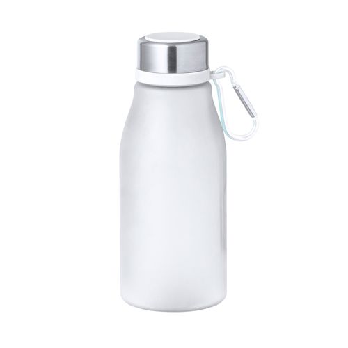 Garrafa em RPET de 370 ml de capacidade. Tampa de segurança de rosca em aço inoxidável e prático mosquetão metálico com cor a condizer com a garrafa. Disponível numa variada gama de cores sólidas em acabamento mate. Livre de BPA e apresentada numa atrativa caixa de design kraft. O material RPET é elaborado a partir de plástico reciclado, para assim fomentar a reutilização de resíduos plásticos e ajudar à sustentabilidade do planeta.370 mlComposition : RPET.