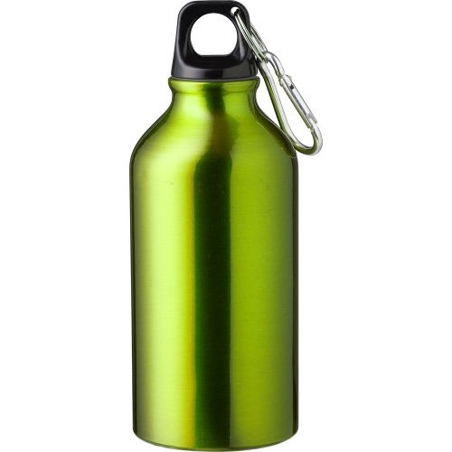 Garrafa reciclada de alumínio (400 ml) com mosquetão. O logotipo reciclado é a laser na garrafa. Materials : Alumínio/Ferro/PP/Silicone Certificates :Cadmium, PAHs, Phthalates, Lead, Heavy Metals Migration, SVHC’s, LFGB, Bisphenol A (BPA), BSCI.