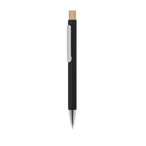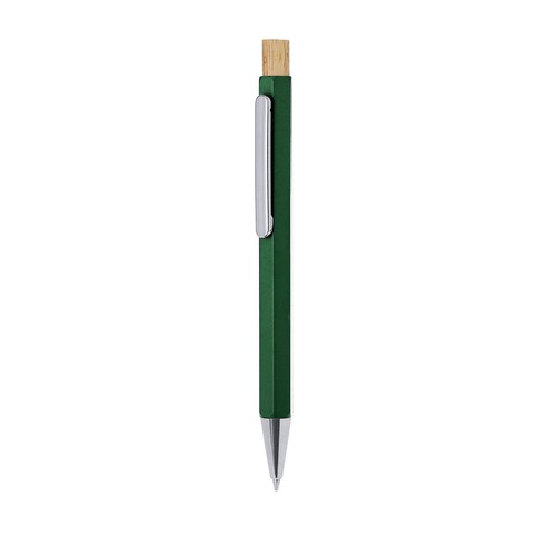 Elegante caneta fabricada em Alumínio Reciclado. Corpo em forma hexagonal distinta, com clip e ponta cromados. De mecanismo de pressão fabricado em bambu e tinta azul. Com logotipo distinto de Alumínio Reciclado marcado na cana.O Alumínio Reciclado é um material com possibilidades de reciclagem quase infinitas, sem perder suas propriedades originais e consumindo menos energia nesse processo.Certificação GRS (Global Recycled Standard / Padrão Global de Reciclagem), que garante a origem reciclada do material usado para fabricar o produto.Materiais como o bambu promovem a utilização de matérias-primas naturais, reduzindo as emissões poluentes. Provém de uma planta de grande resistência e versatilidade, com crescimento e regeneração rápidos, sendo uma excelente alternativa ao uso de madeira tradicional. Carga Jumbo Composition : Alumínio Reciclado.