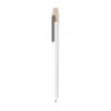 Caneta fabricada em RABS. Conta com um clip metálico e um mecanismo de pressão fabricado em bambu. Em tinta azul. Distintivo RABS na parte superior da caneta.O RABS é um plástico altamente reciclável de grande resistência e com múltiplas aplicações que o tornam uma solução ecologicamente correta. Carga Jumbo Composition : Bambu/ ABS Reciclado.