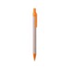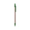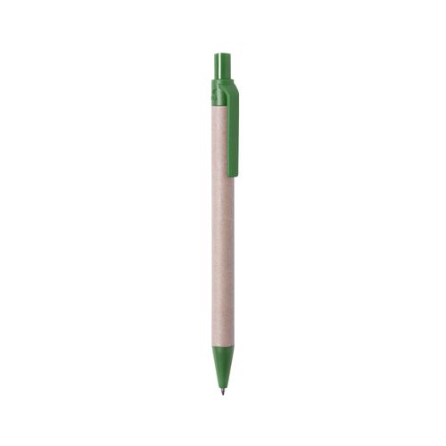 Esferográfica de linha nature de mecanismo pulsador. Uma combinação de corpo em cartão reciclado de cor natural e acessórios em PLA -Ácido Polilático-, que é obtido a partir de recursos 100% naturais como o amido de milho, mandioca ou cana de açúcar, podendo tornar-se 100% compostável no final do seu ciclo de vida útil.Disponível numa variada gama de cores, com tinta azul. Distintivo PLA na parte superior da esferográfica.Composition : Cartão Reciclado/ PLA 100% Compostável.