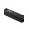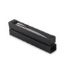 Esferográfica com botão de pressão e corpo em aço inoxidável reciclado. Tinta azul. Apresentada numa caixa.