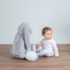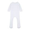Decote elástico flexível. De manga comprida e com pés. Fecho com mola de pressão para ser fácil de vestir. 100% algodão biológico. Abertura por molas de pressão entrepernas e nos ombros. Punhos com acabamento em malha.