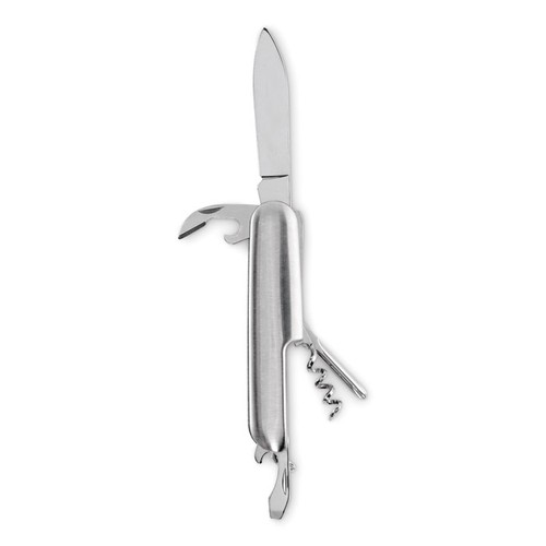 Canivete multiferramentas em alumínio reciclado. 5 funções: lâmina grande, abre-garrafas, chave de fendas, saca-rolhas e abre-latas. Dimensions : 8,5X2,5CM