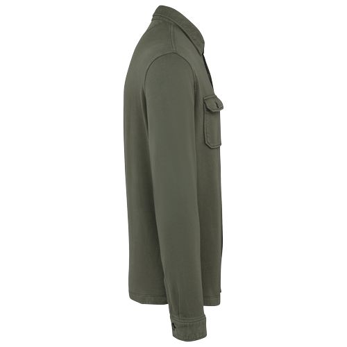 Em algodão biológico mais ecológico e ético. No label: 100% personalizável à imagem do seu projecto. Aspecto lavado fashion. 100% algodão biológico. Corte direito. Malha. Interior cardado 3 fios. Aspecto lavado. Carcela com botões em contraste efeito marfim em plástico reciclado. Punho com botão e abertura. Acabamento do colarinho com tapa-costuras em chevron tom sobre tom. Dois bolsos planos com pala e botão. Costura dupla na bainha. Meia-lua nas costas. Peça tingida após montagem: as cores podem variar ligeiramente de produto para produto. Este produto pode tingir em contacto com superfícies e peças claras. Certificações : GOTS / Algodão Biológico EVE Vegan