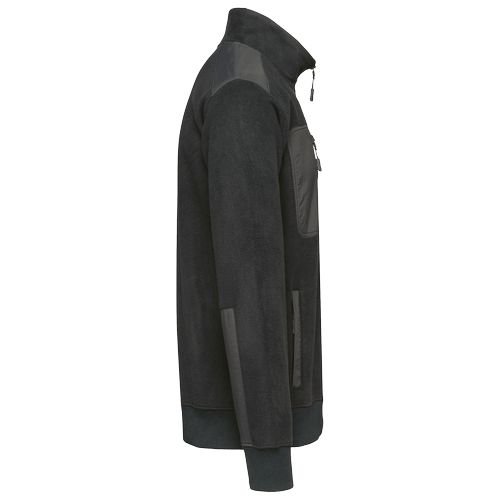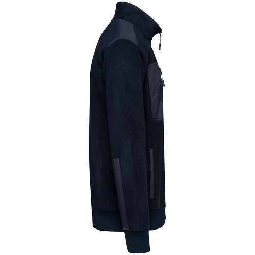 Peça workwear que se insere numa acção eco-responsável. Boa conservação térmica. Resistência e conforto graças aos encaixes de reforço. 100% poliéster reciclado post-consumer. Corte direito. 2 bolsos frontais com fecho em taslan com puxador. 1 bolso no peito direito arredondado com fecho e puxador em taslan com pespontos tom sobre tom. Gola forrada com malha rib 2 x 2 e fecho plástico reciclado + presilha para pendurar no interior. Encaixes de reforço em taslan nos ombros e antebraço. Malha rib tubular 2 x 2 no acabamento das mangas e bainha. Etiqueta de marca amovível.