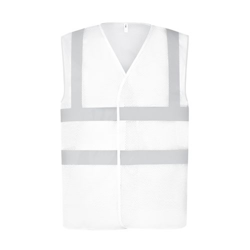 Malha leve e respirável. Faixas retrorrefletoras largas no corpo e uma em cada ombro. Fecho com Velcro® à frente. 100% poliéster. 100% poliéster reciclado. Fabricado a partir de garrafas de plástico PET. Malha leve respirável. Bandas retrorreflectoras com 5 cm de largura no corpo e uma banda em cada ombro. Fecho com Velcro® à frente. Em conformidade com a norma americana ANSI/ISEA 107-2004 e a norma europeia EN ISO20471:2013 Classe 2: somente nas cores Hi Vis Orange e Hi-Vis Yellow. Certificações : Polyester recyclé
