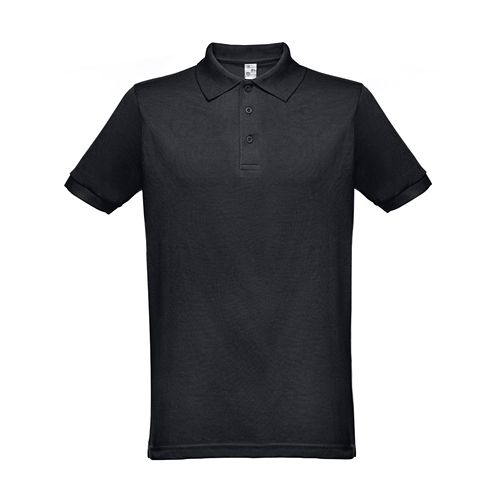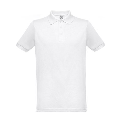 Polo de manga curta para homem em malha piqué 35% algodão cardado e 65% poliéster (200 g/m²). Cor 183: 85% algodão/15% viscose. Polo de corte regular com gola e mangas em Rib, sendo a gola reforçada com fita em malha piqué. Contém carcela reforçada com 3 botões à cor (botão suplente inserido na costura interior). Peça cortada e cosida. Tamanhos: XS, S, M, L, XL, XXLProduct care : Calendário, Não limpar a seco, Não usar máquina de secar, Não utilizar lixívia nem produtos de branqueamentoMaterials : Algodão. PoliésterCertificates : REACH, OEKO-TEXPacking : Polybag de 5 un. – Default customisation : Polo de manga curta – Peito (Bordado 3D – 280 x 200).