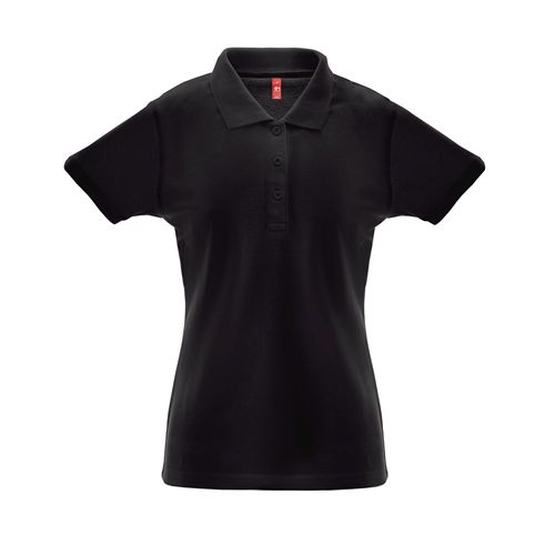 Polo de manga curta para mulher em malha piqué 35% algodão cardado e 65% poliéster (200 g/m²). Polo de corte cintado com gola e mangas em Rib, sendo a gola reforçada com fita em malha piqué. Contém carcela reforçada com 3 botões à cor (botão suplente inserido na costura interior). Peça cortada e cosida. Tamanhos: S, M, L, XL, XXLMaterials : Algodão. PoliésterCertificates : REACH, OEKO-TEX Default customisation : Polo de manga curta – Peito (Bordado 3D – 240 x 200).