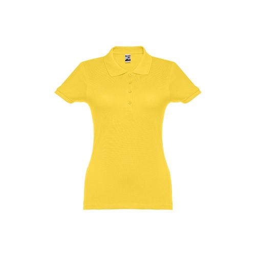 Polo cintado para senhora de manga curta em malha piqué 100% algodão (195 g/m²) cardado (cor 183: 85% algodão/15% viscose). Contém gola e mangas em Rib, sendo a gola reforçada com fita em piqué. Na parte frontal, junto da gola, encontram-se quatro botões à cor (botão suplente inserido na costura interior). Peça cortada e cosida. Tamanhos: S, M, L, XL, XXLProduct care : Calendário, Lavagem à máquina. Temperatura Máx. 40º, Não limpar a seco, Não usar máquina de secar, Não utilizar lixívia nem produtos de branqueamentoMaterials : 100% algodãoCertificates : REACH, OEKO-TEXPacking : Polybag de 5 un. – Default customisation : Polo de manga curta – Peito (Bordado 3D – 240 x 200).
