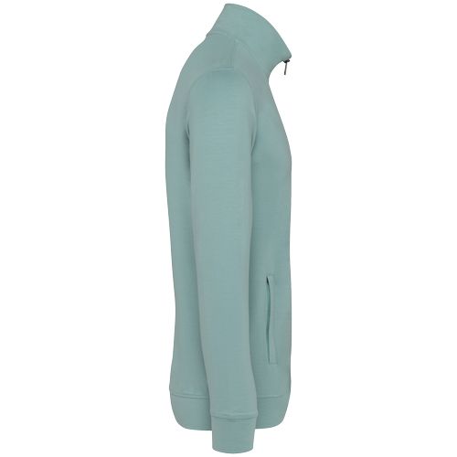 48% modal TENCEL™ / 47% algodão biológico / 5% elastano. Corte justo. Gola subida. Toque ultra-suave. Meia-lua nas costas. 2 bolsos frontais. Fecho em metal reciclado. Punhos, cós e interior dos bolsos no tecido principal. Gola com tapa-costuras no interior no material principal. Ponto de recobrimento nos punhos, nas cavas e no cós. Certificações : OCS Blended / Algodão Biológico EVE Vegan