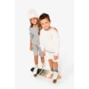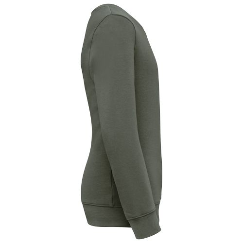 85% algodão biológico / 15% poliéster reciclado pós-consumo Algodão penteado ringspun. Corte justo. Interior cardado 3 fios LSF (Low Shrinkage Fleece). Com banho de enzimas. Meia-lua nas costas. Malha rib 1 x 1 no decote, no cós e nos punhos. Pesponto duplo nos punhos, nas cavas e no cós. Pesponto simples no decote. Decote com tapa-costuras no interior em chevron. Certificações : GOTS / Algodão Biológico EVE Vegan Polyester recyclé