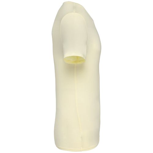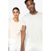 100% algodão biológico. Fabricada em Portugal. Algodão penteado. Corte justo. Produto com banho de enzimas. Costuras laterais. Aspecto lavado. Pesponto simples na gola. Tapa-costuras no interior do decote no material principal. Pesponto duplo nas mangas e na bainha. Peça tingida após confecção. Esta técnica pode apresentar variações de cores de produto. para produto. Este produto é susceptível de tingir em contacto. com superfícies ou peças de roupa claras. Certificações : GOTS / Algodão Biológico EVE Vegan