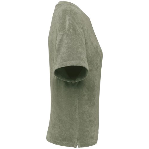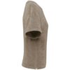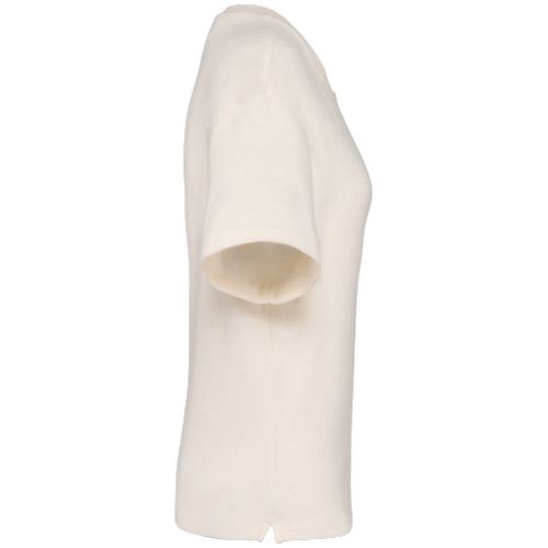80% algodão biológico / 20% poliester reciclado pós-consumo. Fabricada em Portugal. Algodão penteado. Material turco. Corte oversize com ombros descaídos. Costuras laterais. Banho de enzimas. Decote em malha rib 1 x 1. Tapa-costuras no interior do decote no material principal. Meia-lua no decote. Aberturas laterais com acabamento em chevron. Bainha com costura dupla nas mangas e no cós. Certificações : GOTS / Algodão Biológico EVE Vegan Polyester recyclé