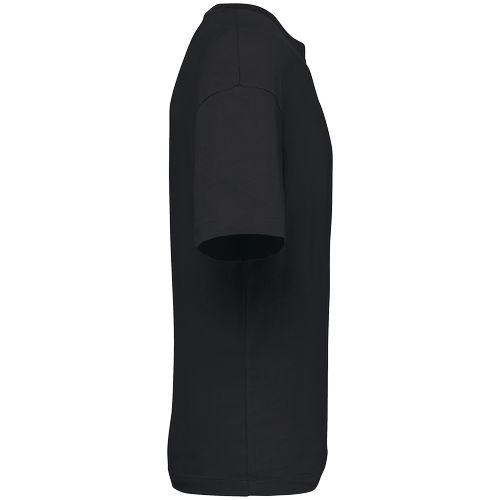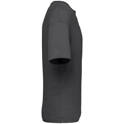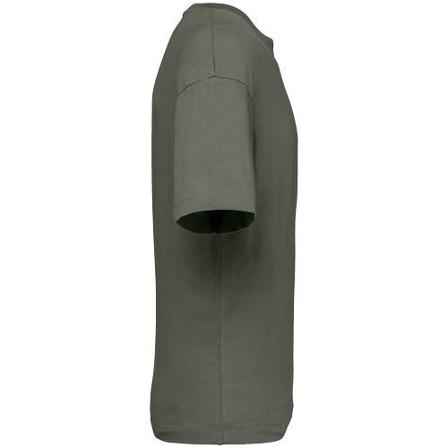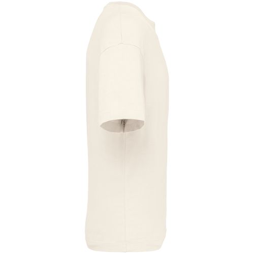 100% algodão biológico. Algodão cardado. Corte oversize com ombros descaídos. Costuras laterais. Toque ligeiramente «áspero». Decote em malha rib 1 x 1. Tapa-costuras no interior do decote no material principal. Bainha com costura simples nas mangas e no cós. Certificações : GOTS / Algodão Biológico EVE Vegan