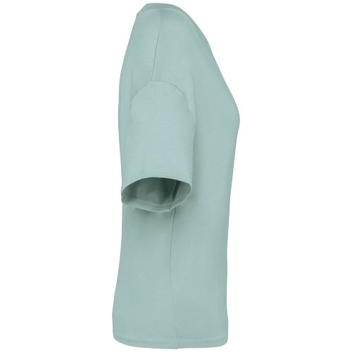 100% algodão biológico. Algodão penteado ringspun. Corte oversize com ombros descaídos. Costuras laterais. Decote em malha rib 1 x 1 com pespontos tipo nervuras. Tapa-costuras no interior do decote no material principal. Bainha com costura dupla nas mangas e no cós. Certificações : GOTS / Algodão Biológico EVE Vegan