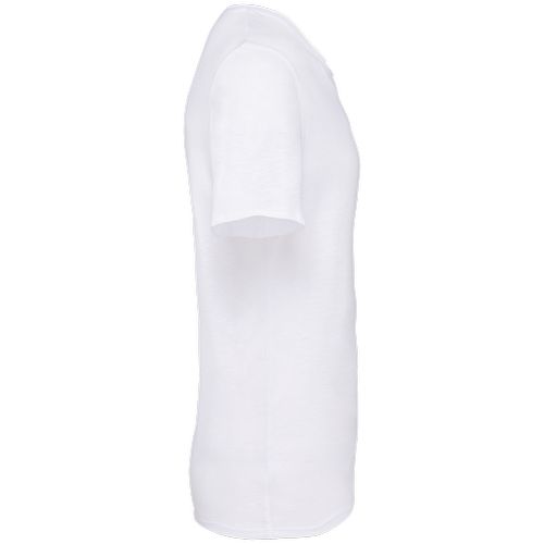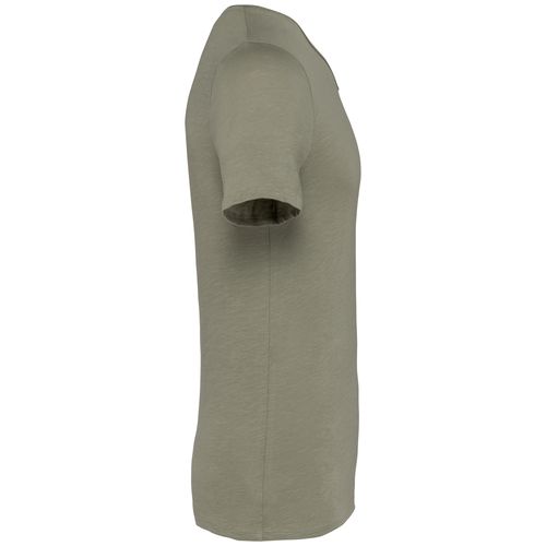 100% algodão biológico. Algodão penteado ringspun. Malha jersey com aspecto «envelhecido». Corte justo. Costuras laterais. Decote sem acabamento no material principal. Tapa-costuras no interior do decote no material principal. Bainha com costura dupla nas mangas e no cós. Peça lavada após confecção: as cores podem variar ligeiramente. Certificações : GOTS / Algodão Biológico EVE Vegan