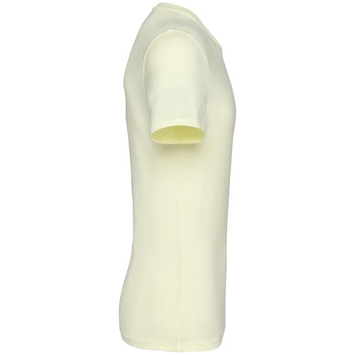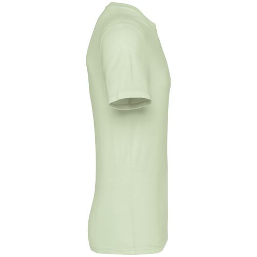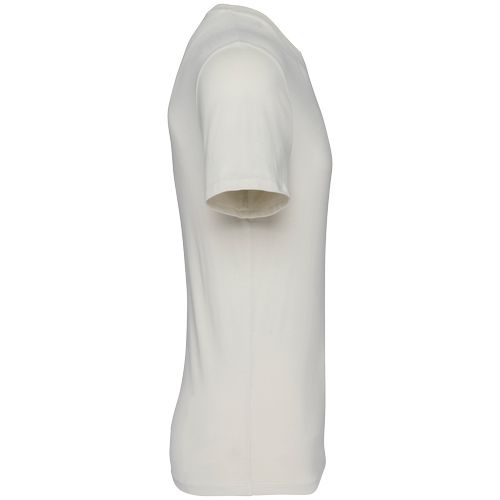 100% algodão biológico. Algodão penteado ringspun. Corte justo. Costuras laterais. Banho de enzimas. Pespontos duplos no acabamento da manga e do cós. Decote em malha rib 1 x 1. Tapa-costuras em jersey à cor no decote. Certificações : GOTS / Algodão Biológico EVE Vegan