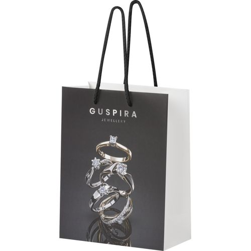 Saco de papel integra médio feito à mão mate de 170 g/m2 (18 x 9 x 23 cm) com alças de plástico. A frente e o verso personalizáveis fornecem muito espaço para impressão de um logótipo ou qualquer outro design, tornando-o uma excelente ferramenta de marketing comercial. Fabricado na Europa.Papel reciclado , 170 g/m2 Green Points Total :42 – CO2 foot print : Impressão em papel – ambos os lados – max color : 1 – 180 x 230 mm.