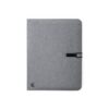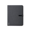 Pasta elegante de linha nature de tamanho A4. Fabricada em resistente 600D RPET efeito melange, elaborada a partir de plástico reciclado para incentivar a reutilização de resíduos plásticos e contribuir para a sustentabilidade do planeta. Detalhes em preto e fecho de metal com fita elástica especialmente desenhada para gravação a laser. Interior com bloco removível de 20 folhas pautadas, 3 bolsos com aba, porta-cartões e suporte para esferográfica. Distintivo RPET no canto.Bloco 20 FolhasComposition : Poliéster 600D RPET.