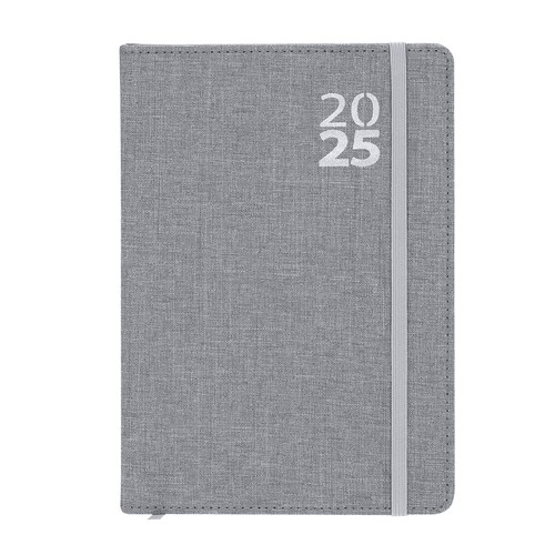 Diário tamanho A5 em RPET macio e resistente, com capas duras e fecho de banda elástica. Inclui uma caixa de apresentação em kraft e um logotipo RPET.Design de página por dia, com uma área para anotações e marcador de tecido. Em 2 idiomas: inglês e espanhol.O material RPET é feito de plástico reciclado, promovendo assim a reutilização de resíduos plásticos e ajudando na sustentabilidade do planeta. Página Dia. Caixa de Apresentação Incluída Composition : Poliéster RPET 300D.