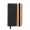 Bloco de notas com capas rígidas elaboradas com cortiça macia. Inclui 80 folhas lisas com elástico de sujeição e marca páginas de recido a condizer. Disponível numa ampla gama de cores, com toque exterior em combinação de cortiça natural e PU. Apresentado numa bolsa individual. Elaborado com elementos vegetais para assim promover a utilização de matérias- primas naturais e reduzir as emisssões poluentes.Capa Rígida. 80 FolhasComposition : Cortiça/ Polipele.