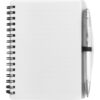 Caderno de notas (aprox A6) com 65 folhas, capas em PP e esferográfica de plástico com clipe de metal. Escrita azul. Colors : branco Materials : Metal/Papel/PP 0.7mm Certificates : Safety Data Sheet (SDS) (nr 27), EN71-3 (nr 1), UKCA (nr 231), Cadmium (nr 2), PAHs (nr 4), Phthalates (nr 13), AZO Dyes/Amines (nr 18), Lead (nr 19), PCP (nr 39).