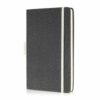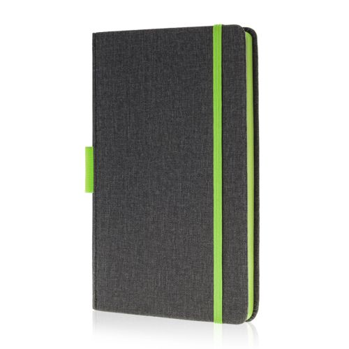 Bloco de notas A5 com capa em PU e porta-esferográfica. Com 91 folhas pautadas de 80g, este bloco tem uma capa em PU térmico, com uma textura visualmente semelhante a tecido. Detalhes coloridos abrilhantam a capa preta. Destaque para o porta-esferográfica, para que nunca perca a sua caneta favorita de vista.