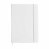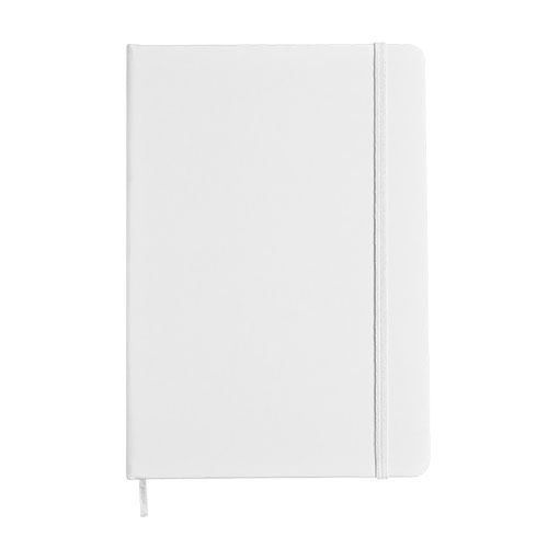 Bloco de notas A5 em PU. Este bloco com 160 páginas lisas de 70 gramas, conta com boa área de personalização. Incluí elástico e fitilho.