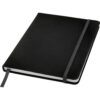 Bloco de notas A5 com fecho e fita elástica em cor condizente. Com 96 folhas (60g/m2) lisas.Este artigo é certificado FSC® (C166462).PU Plastic Green Points Total :40 – CO2 foot print : 1,293Tampografia – frontal – max color : 4 – 55 x 55 mm.
