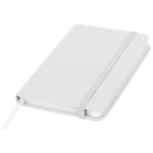 Além de ser essencial para o escritório, o caderno de notas Spectrum é também um óptimo artigo para promover qualquer marca. O caderno de capa dura consiste em cartão revestido com uma capa de PVC de toque suave. As 96 folhas de 60 g/m² forradas de fonte responsável são ideais para anotar ideias rápidas ou notas longas. O tamanho de referência A6 é prático, pois cabe suavemente no saco médio e é fácil de segurar. A fita do marcador de páginas e o fecho elástico estão na mesma cor.Este artigo é certificado FSC® (C166462).PU Plastic Green Points Total :40 – CO2 foot print : 0,194Tampografia – frontal – max color : 4 – 45 x 55 mm.