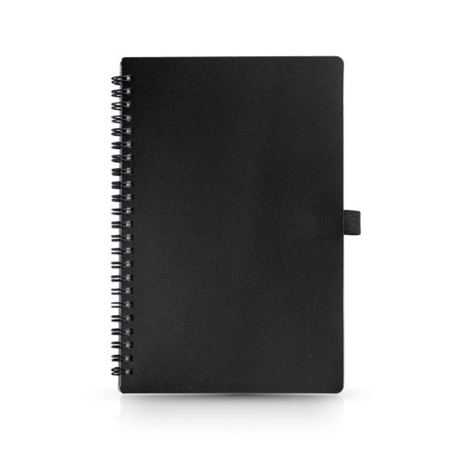 Bloco de notas de argolas A5 com capa em PP. Este bloco contém 140 páginas pautadas e um elástico para suporte de esferográfica. Um brinde ideal para quem prefere as argolas à lombada fixa.