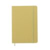 Bloco de notas A5 com capas duras elaborado a partir de frutas. Interior com 80 folhas pautadas, com marca páginas e banda elástica a condizer. Disponível em variadas cores de acabamento kraft. Inclui logotipo Papel de Fruta na contra capa. Apresentado numa bolsa individual reciclada.Mediante a mistura de resíduos e desperdícios procedentes da indústria agroalimentar, misturas com outros materiales reciclados, obtém-se um papel 100% sustentável: o papel de frutas. Promovendo o seu uso contribui-se para a reutilização de materiais e para um maior compromisso ambiental.Capa Rígida. 80 FolhasComposition : Papel de Fruta/ Cartão Reciclado.