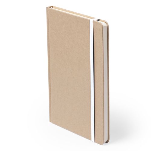 Bloco de notas A5 com capas duras em resistente cartão reciclado. De 100 folhas brancas lisas e banda elástica para seu fecho.Capa Rígida. 100 FolhasComposition : Cartão Reciclado.
