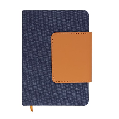 Bloco de notas A5 fabricado em combinação de Canvas Reciclado com PU Reciclado. De design elegante com aba marrons de fecho magnético combinando, com prático porta-cartões em seu interior. Interior com 80 folhas cremosas dispostas em linhas e marcador de tecido combinando com a aba. Com distintivo de PU Reciclado.A PU Reciclado destaca-se por sua resistência e elasticidade. Este material reciclado e reciclável é uma opção sustentável que resgata as fibras descartadas nos processos de fabricação, minimizando assim o desperdício de material e contribuindo para reduzir o impacto ambiental, mantendo suas propriedades originais. Capa Rígida. 80 Folhas Composition : Canvas Reciclado/ PU Reciclado.