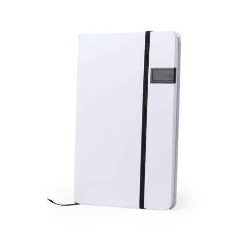 Bloco de notas elegante em branco, com memória USB de 16 GB de capacidade integrada na capa frontal. Fita elástica, memória USB e marcador a condizer, numa ampla gama de cores. Inclui 100 folhas pautadas.Capa Rígida. 100 Folhas. Memória USB 16GB IncluídaComposition : Cartão.