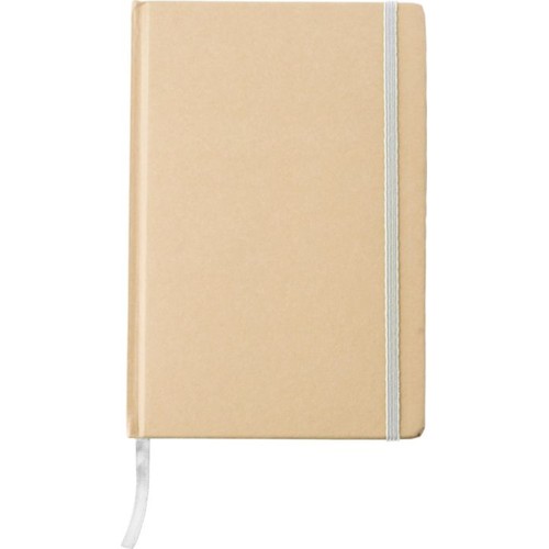 Bloco de papelão reciclado (A5) com 160 páginas pautadas. Com elástico para manter fechado e marcador de fita. Colors : caqui Materials : Poliéster/Borracha/Recycled Cardboard/Recycled paper Certificates : Cadmium (nr 2), AZO Dyes/Amines (nr 18), Formaldehyde (nr 30), PCP (nr 39), Global Recycled Standard (GRS) (nr 201).