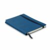 Bloco A5 com capa macia. 80 folhas pautadas e bolso dobrável na contra capa. Espaço para caneta. Fita elástica e marca página.