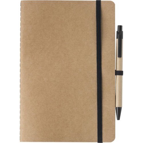 Caderno em cartão reciclado (aprox. A5) com 120 folhas em branco. Inclui uma esferográfica de cartão e palha de trigo com tinta azul. Apresentado num saco de polietileno. Colors : azul-cobalto Materials : ABS/Papel/Borracha Certificates : Cadmium (nr 2), PAHs (nr 4), Phthalates (nr 13), AZO Dyes/Amines (nr 18), Lead (nr 19), PCP (nr 39).