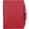 Caderno de notas (aprox A5) com 65 folhas, capas em PP e esferográfica de plástico com clipe de metal. Escrita azul. Colors : vermelho Materials : Metal/Papel/PP 0.7mm Certificates : Safety Data Sheet (SDS) (nr 27), Cadmium (nr 2), PAHs (nr 4), Phthalates (nr 13), PCP (nr 39), EN71-3 (nr 1), UKCA (nr 231).