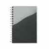 Caderno A5 com capa RPET e 80 páginas de papel forrado.