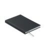 Bloco de notas A5 em poliéster pós-consumo 60% reciclado e capa em PU 40%. 256 páginas pautadas em papel reciclado de 70 g/m² (128 folhas). Com 2 marcadores de página em fita de poliéster.