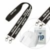 Lanyard em poliéster, com dois mosquetões. Ideal para suporte de credenciais, identificadores de PVC, etc….