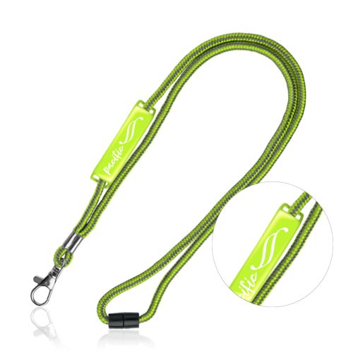 Lanyard tubular em poliéster com ajuste em PVC, fecho de segurança e mosquetão Lans