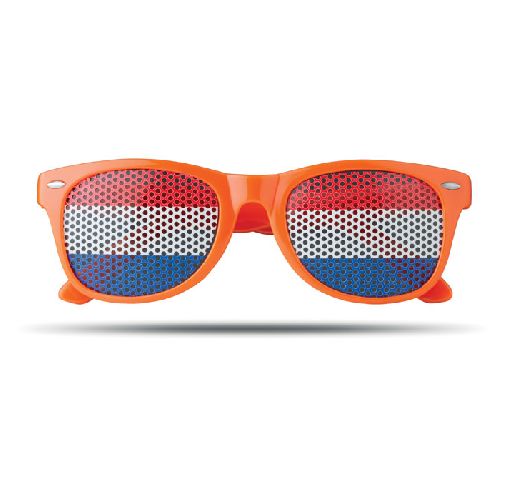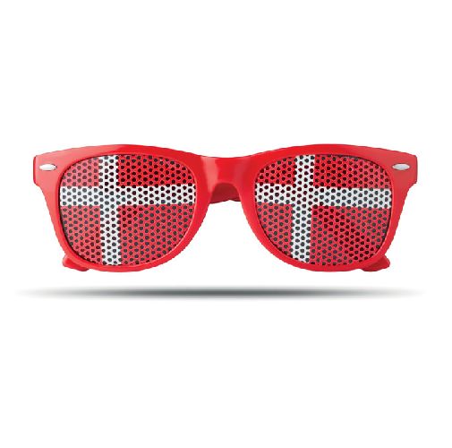 Óculos com lentes de bandeira do país.