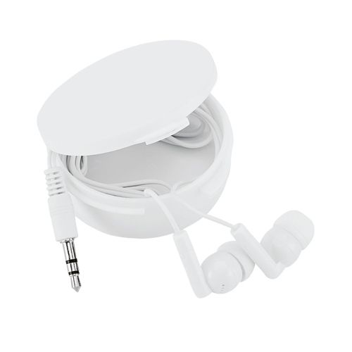 Auriculares em caixa de plástico, 3,5 mm. A caixa em plástico rígido pode ser personalizada e protege os seus auriculares. Cabo com aproximadamente 1,13 m de comprimento.
