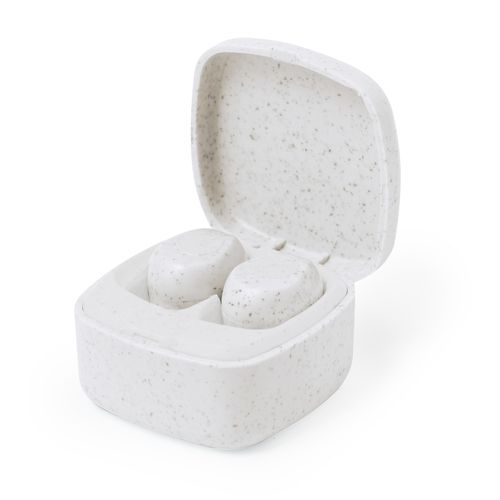 Auriculares intra-aurais em palha de trigo, com ligação Bluetooth® 5.0. Com um desenho ergonómico, incluem um botão de controlo tátil integrado no auricular, cada um com uma bateria de 30 mAh.Base de carga a condizer com bateria de 200mAh e luz LED de estado de carregamento. Mãos-livres e recarregáveis, com cabo Tipo C incluído. Embalados individualmente num estojo de luxo com tampa articulada numa caixa de design kraft. Disponível numa vasta gama de cores, combinando a palha de trigo em cor natural com tons originais. Inclui manual de instruções em espanhol e inglêsA palha de trigo promove a utilização de matérias-primas naturais, reduzindo assim as emissões poluentes.Fabricado de acordo com as normas RoHS e em conformidade com os seguintes requisitos de segurança:Sistema de proteção contra o sobreaquecimento.Sistema de proteção contra sobrecargas.Sistema de bloqueio para evitar curto-circuitos.Conexão Bluetooth. Bateria 30 mAh/ Estação de Carregamento 200 mAhComposition : Palha de Trigo/ ABS.